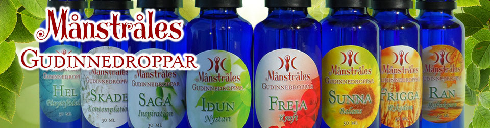 • Månstråles Gudinnedroppar omfattar åtta unika blandningar fyllda av vibrerande kvinnokraft.